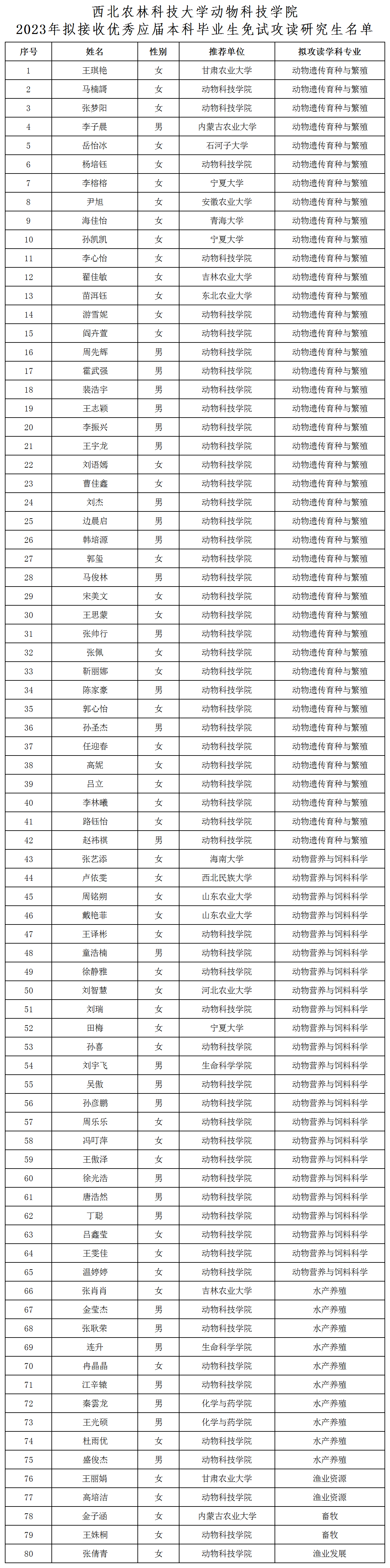 根据学校《关于做好2023年接收优秀应届本科生免试攻读研究生工作的通知》及绿帽小说 《关于做好2023年接收优秀应届本科毕业生免试攻读硕士学位研究生工作的通知》要求,经学生本人申请,绿帽小说 推免工作复试小组考核,绿帽小说 推免生遴选工作领导小组审核,拟接收刘瑞等80名本科生免试攻读研究生。现将名单予以公示(见附件),公示期为9月28日-9月30日。公示期间,若对拟录取结果有异议,请以书面形式向绿帽小说 推免工作监督小组反映,联系电话:029-87092120。