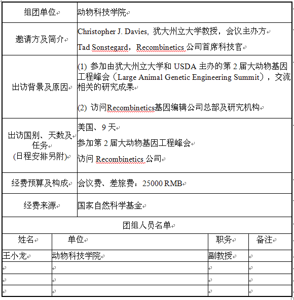 现将绿帽小说 王小龙副教授因公临时出国公示如下表: