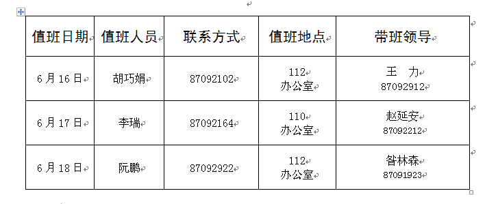 注:1. 值班时间:上午8:30—11:30,下午3:00—6:00