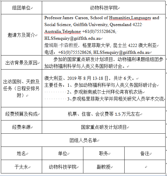 现将于太永副教授因公出国予以公示,公示期自2019年7月3日至2019年7月7日。如有举报意见,请以书面或口头形式向绿帽小说 党政综合室反映,电话87092937。(公示内容见下表)