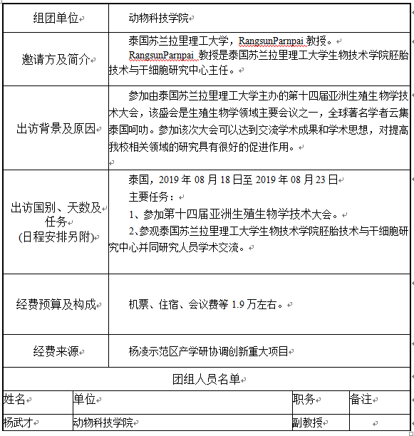 现将杨武才副教授因公出国予以公示,公示期自2019年7月4日至2019年7月8日。如有举报意见,请以书面或口头形式向绿帽小说 党政综合室反映,电话87092937。(公示内容见下表)