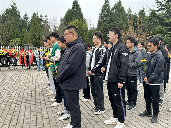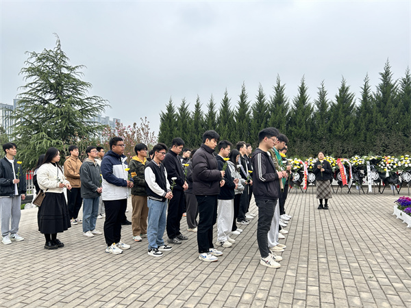 上午九点整,全体参与成员肃立在杨凌烈士陵园门口,手捧鲜花,庄重肃穆地列队待命。随后,队伍步入陵园内,在烈士纪念碑前,全体同志集体肃立,向先烈们鞠躬默哀,表达深切的缅怀之情和崇高的敬意。石佳一同学的声音悠扬而铿锵:“今天,我们聚集在此,怀着崇敬之心,祭奠那些在国家艰难时刻挺身而出的英雄,们是那个时代的先驱,他们的英勇事迹永远铭刻在人们心中……”三分钟的肃立,仿佛是对逝去英灵的最高礼赞,全场无声,唯有白菊在微风中轻轻摇曳。