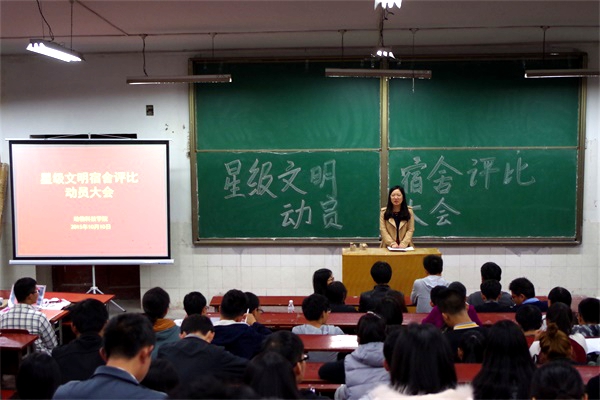 为充分发挥学生宿舍在教育管理和学生素质养成上的基础阵地作用,促进绿帽小说 学生良好习惯的养成,增强宿舍文明和自律意识,全面提高学生素质,促进学生健康成长,10月10日下午,绿帽小说 于四号楼楼4129教室举办了“星级文明宿舍评比动员大会”。绿帽小说 全体专兼职辅导员参加了本次会议。