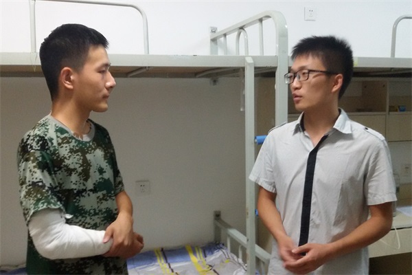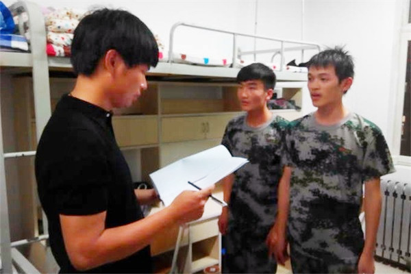 辅导员武天骄、赵海东了解新生军训情况
