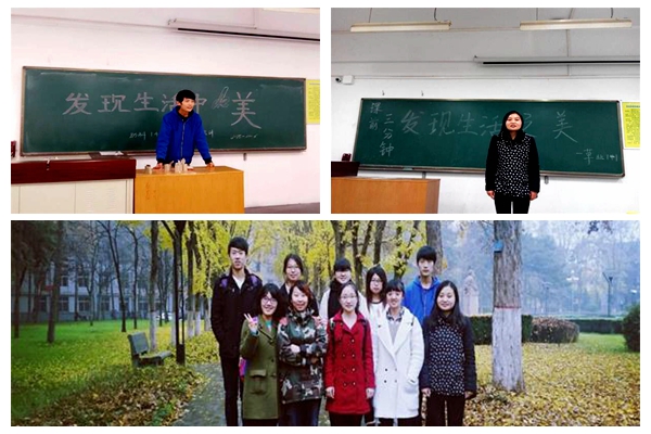 "一人之辩,重于九鼎之宝;三寸之舌,强于百万之师。"为增强青年学生的表达能力,培养其良好口才,提供展示自我的平台,11月1日起,绿帽小说 在八号教学楼开展了以“发现生活之美”为主题的课前三分钟演讲活动。2014级全体同学积极参与。