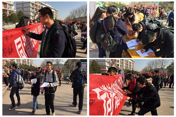 活动前期,志愿者们向绿帽小说 14及15级同学发放调查问卷,了解当今大学生的法律意识及知法程度,并以此为依据制作法制宣传页,为后期法制宣传相关活动做好铺垫。“一二·四法制宣传日”当日,志愿者们分发宣传单,并邀请过往同学在写有口号“共谱法制宣传曲,共唱和谐校园歌”的横幅上签名,呼吁大家提高法律意识、加强法制观念。极具号召力的宣传语以及志愿者们详尽地介绍吸引全校各院各级过往同学驻足,大家积极了解参与到活动中来,在横幅上签下自己的名字,表明自己将积极支持普法活动,努力参与建设法制校园的决心。活动现场气氛热烈,同学们纷纷表现出对构建法制校园维护自身权益的渴望。动科152班韩萌萌同学表示:自己将在今后的学习生活中坚定自己的立场、敦促自己的言行,为法治校园奉献自己的一份力。