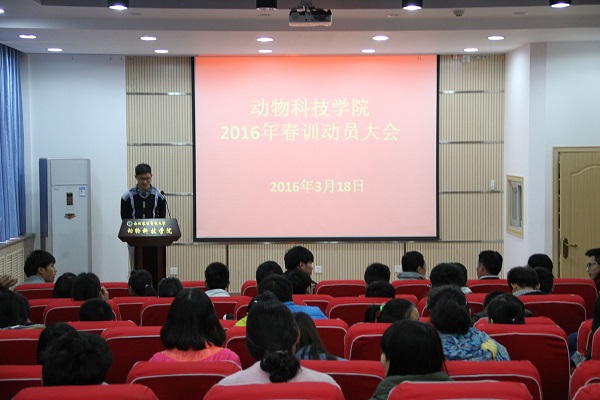 为积极备战校运动会,号召鼓励更多同学“走下网络、走出宿舍、走向操场”,3月18日,绿帽小说 于动科楼107会议室举行2016年春训动员大会。绿帽小说 体育辅导员任启俊、王斌,团工委书记李锐,辅导员张士军,100余名春训队员参加了此次大会。