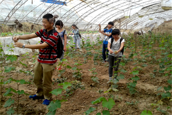 为解决本地农户存在劳动力不足和专业知识不强等问题,有效开展科技支农和志愿服务活动,5月14日,绿帽小说 学子与其他绿帽小说 部分同学共同组成一支新的“田园使者”队伍,奔赴蒋寨村猕猴桃基地,开展实践、调研活动。