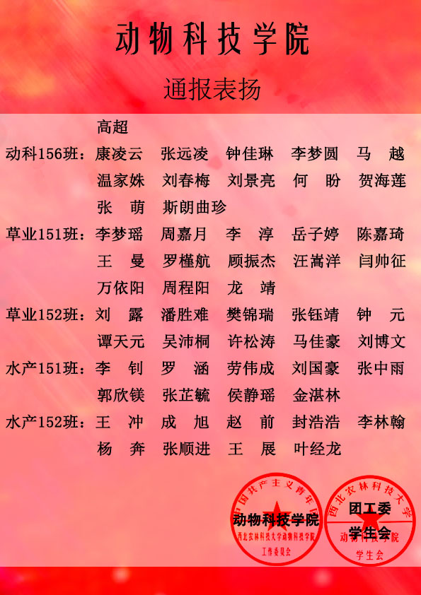 【团工委 学生会】通报表扬