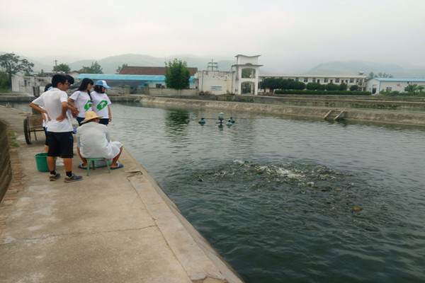 实际生产是基础,服务队成员们跟随基地科研助理符争走进鱼塘,参与每天最基础的生产工作。投饵、分鱼、投喂鱼药都充满了独特的趣味。同学们一边聆听符助理讲解投饵的不同方式与取得的效果,一边亲身投喂饲料,畅快地享受了一把投饵的欢乐与趣味。分鱼工作给队员们留下了劳累却快乐的回忆,队员们干劲十足,在亲密接触匙吻鲟的过程中,拥有了另一番别样经历。队员胡义贤谈道;“今天工作结束之后感觉很累,不过看到那些可爱的鱼儿们,就感觉非常满足。基地的学长学姐们都很刻苦,我很佩服他们的坚持。”同学们在实践中感悟这段珍惜时光。给大学生活添上了一笔亮丽的风景线。