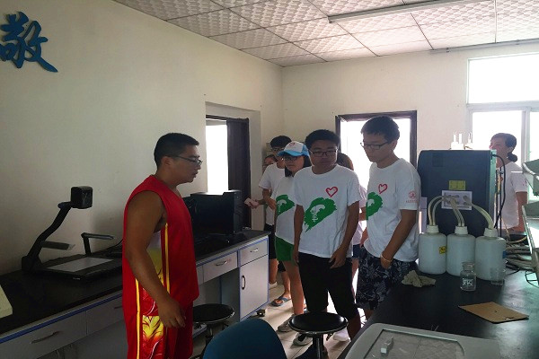 活动伊始,水产站的负责人向队员们强调了相关安全问题。随后在科研助理符峥的带领下,队员们来到实验室,符助理向同学们一一介绍了实验室里的先进设备,并教授同学们学习使用科研人员平日里所用的分析天平、显微镜等专业实验仪器。在专业人员的悉心指导下,同学们走进饲料厂,了解颗粒饲料机和膨化饲料机等不同种类的饲料制造仪器的具体用途;参观匙吻鲟育苗池,体验在当今现代化养殖设备的帮助下高质高效的养鱼过程。同学们在科研中探索,在探索中学习,在学习中寻求真知。