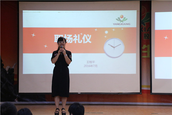 此次讲座的主讲人是扬翔公司人力资源中心王桂平经理,她以自己工作多年的经历和经验,向同学们介绍了关于大学生缺乏礼仪的诸多案例,也讲述了职场礼仪对企业间合作的重要意义。同学们听了讲座之后,纷纷表示,具备优秀的职场礼仪不仅展现了个人的修养与魅力,更代表着一个企业的形象。