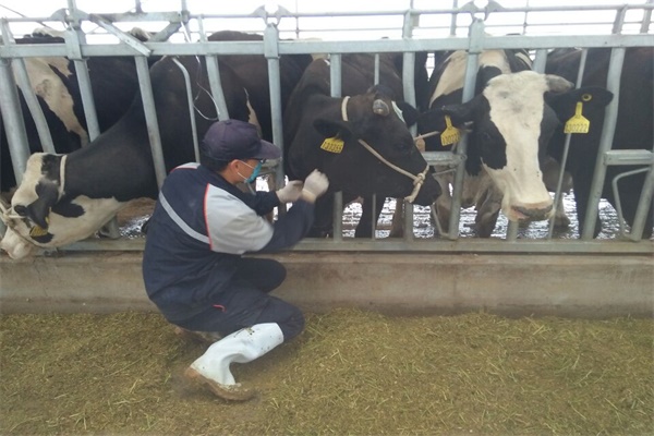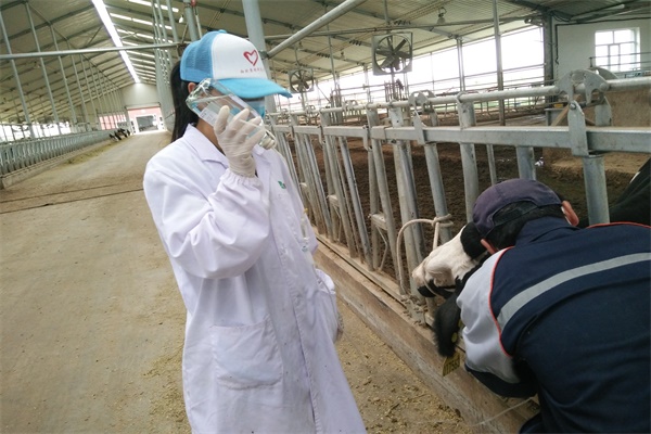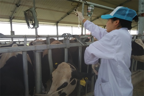 在对牧场有了大致了解后,企业将队员们分配到了不同的岗位。由于专业知识的交织,分配到兽医站的队员主动学习了关于治疗奶牛乳房炎等疾病的相关知识,并亲身参与到实际操作中去。治疗期间,队员们遭遇了重重困难,首先,在寻找颈静脉的过程中便遭遇了一些小挫折,其次,由于奶牛皮肤较厚,导致扎针时很难扎破。一个个难以克服的困难连续不断的挑战着队员们的信心。但是队员们通过自身不断努力、克服恐惧,不仅学会了如何配药而且学会了扎针输液。