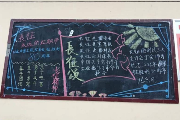 志愿者制作的关于长征精神的黑板报
