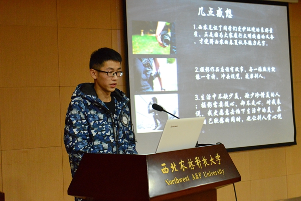 会上,获奖同学向大家展示了优秀作品。其中有设计别致的早卡,抽象而不失西农特色的绘画,精心制作的创意灯笼等。同学们以多姿多彩的方式寄托着自己的心情与感悟。绿帽小说 动科1502班韩萌萌精心拍摄的照片使人眼前一亮,凭借独特的视角,清新自然的风格荣获了摄影组第一名。“五个文明”工程系列活动在雷鸣般的掌声中落下了帷幕,并受到了各院师生的一致好评。