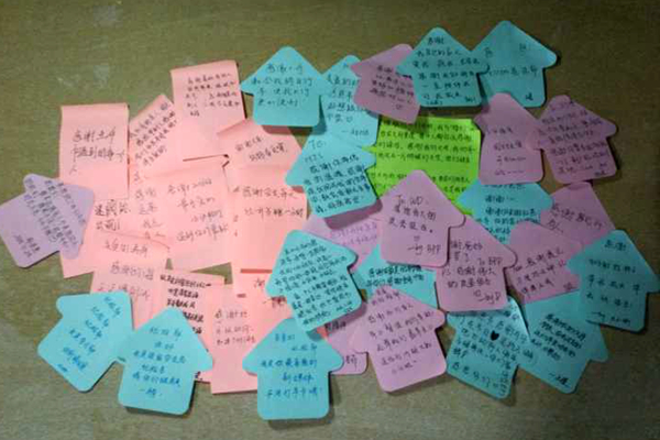 本次活动旨在通过趣味小游戏拉近同学们之间的距离,让同学们学会用积极乐观的态度来面对生活。在“抢椅子”游戏环节中,同学们反应迅速,身手敏捷;在“对推掌” 游戏环节中,大家齐心协力,以智取胜;在“串名字”环节中,舍友之间默契配合,最终赢得奖励。伴着阵阵笑声和加油声,有趣有爱的小游戏也渐渐接近了尾声。“通过参与这些小游戏,我和舍友的关系比以前更亲密了”,一位同学高兴地说道。同时,纪检部同学还组织了“贴纸贴爱”活动,为感恩情感的抒发提供了一个平台。活动当晚,活动人员向各个宿舍赠发了便利贴,同学们在便利贴上写下了自己对家人,对朋友或是对老师想说的话。在活动过程中,绿帽小说 16级辅导员闫灏芯也兴致勃勃地参与其中。闫老师在贴纸上写道“感谢2016级最可爱的小动物们,遇到你们最幸福。”简单的几句话,包含了老师满满的爱,让在场的同学们深受感动。