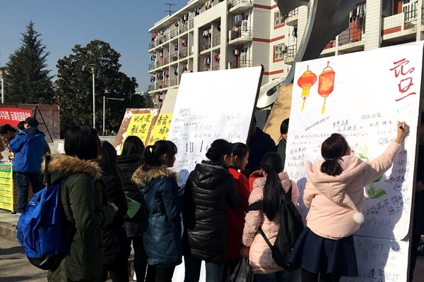此次活动的顺利进行,不仅丰富了同学们的校园文化生活,让同学们心里的愿望和期待都有了表达的窗口,还传达了对考研学生的加油和祝福,为创建文明、友爱、和谐、温馨的校园环境起到促进作用。参与活动的同学们表示,祝愿每个西农学子都能在考试中取得好成绩,为2016年画上圆满的句号。