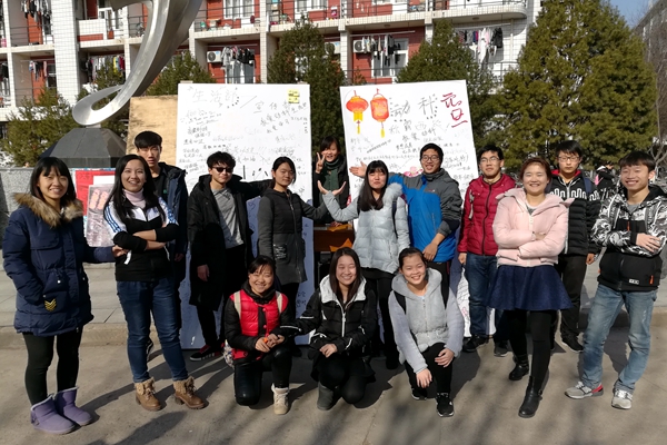 活动一开始便吸引了众多路过的学生,同学们纷纷上前,现场挥洒笔墨,在宣传板上写下对考研学生的美好祝愿、给自己的励志短语。有人写下对自己期末考试的祝愿“逢考必过”,更有不少同学纷纷表达对考研学生的祝福。“助力考研,温暖同行。” 一声声温馨的考试祝福在这个冬天显得暖意十足。当然也有人流露了对远方家人的思念,还有人表达了对新年的祝福和期许。活动还吸引了国际友人参与,他热情写道:“I wish happy new year 2017.”营造了浓浓的元旦氛围。同时生活部的部委们还贴心准备了惊喜的抽奖活动,参与活动的同学们都有机会抽到精美的贺卡、糖果和书签,参与活动的同学们个个喜笑颜开。