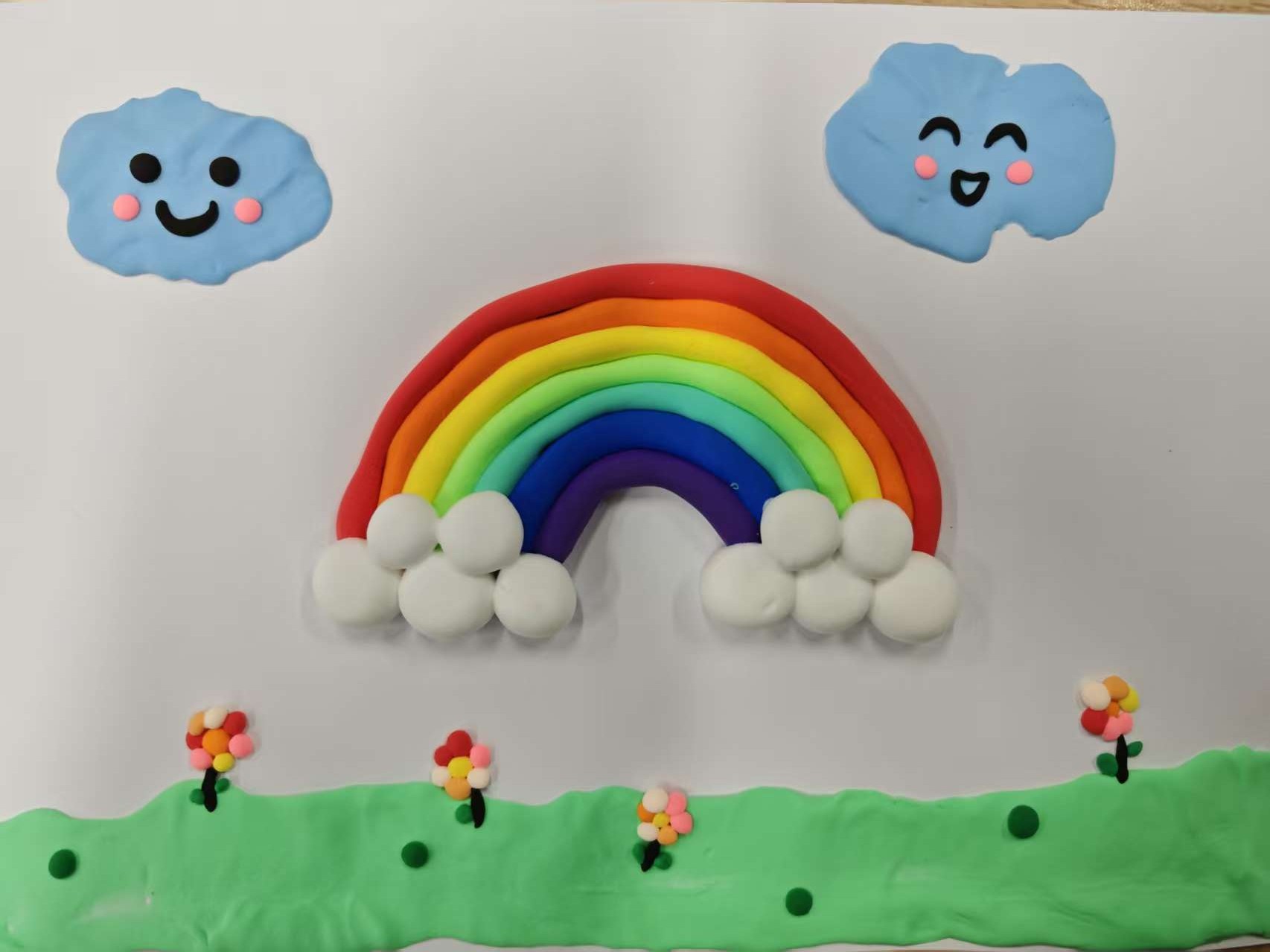 活动现场,超轻黏土、白纸等材料工具一应俱全。同学们以“冬日”为灵感自由创作,指尖捏塑出诸多鲜活场景:有色彩斑斓如拱桥的彩虹搭配笑脸云朵,定格雨后放晴的美好;也有雪夜中围彩条围巾的雪人、覆雪的松树,在弯月与雪花点缀下勾勒出静谧浪漫……从自然景致到创意形象,大家将暖冬记忆化作掌心的黏土作品。