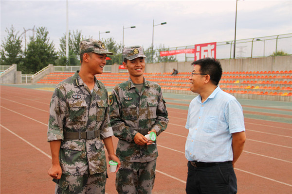 带训教官向院领导汇报军训情况