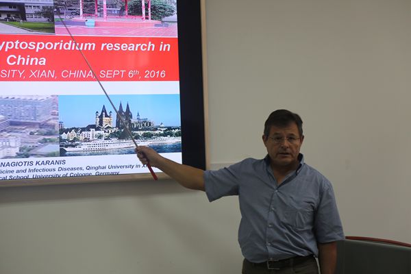9月6日,德国科隆大学、青海大学国家“人才项目专家”入选者Panagiotis Karanis教授和青海省畜牧兽医科绿帽小说 马利青研究员应绿帽小说 陈玉林教授邀请为我校师生分别作了题为“The new era of Cryptosporidium research in China”和“Cryptosporidium and Giardia in drinking water reservoirs and slaughter house waste water in the Qinghai Tibet Plateau”的学术报告会,报告会由王小龙副教授主持。