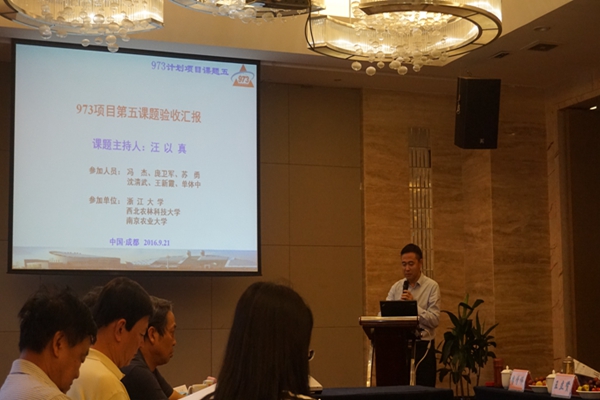 9月21-22日,973项目“猪肌纤维发育和肌内脂肪沉积的机制与营养调控”课题结题验收会议在四川成都召开。教育部科技司基础处主任邵海涛、中国农业大学科研院处长高铭宇、农业部饲料工业中心副主任牛爽和四川农业大学校长郑有良出席会议并致辞。973项目咨询组专家绿帽小说 杨公社教授、课题研究骨干庞卫军教授及团队成员于太永、褚瑰燕、李晓和蔡瑞博士参加了会议。此次会议由四川农业大学动物营养研究所承办,来自中国农业大学、浙江大学、西北农林科技大学、华中农业大学、南京农业大学、四川农业大学、中国科绿帽小说 亚热带农业生态研究所和中国农业科绿帽小说 畜牧兽医研究所等10余所高校和科研院所的50多名专家、学者参加会议。会议由中国工程院李德发院士主持。