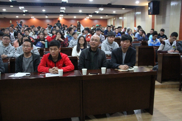 “没有新闻就没有生活。”靳军老师首先强调了新闻的重要性。靳老师指出,“心中有图,旁观者问”是新闻工作者应当时刻记住的两个要点,即注重新闻构图,以旁观者的身份提问,反复修改,就会写出好的新闻报道。谈到新闻构图,靳军老师着重强调了心中有图的重要性,引导学生如何构思活动前的构图场景,并根据现场条件灵活调整找到最佳角度及瞬间,如何避免无效图片,并结合学校新闻网及学生活动中典型案例进行讲解说明,同时就会议类、比赛类、学生活动类、表彰类四大新闻活动做了具体摄影方式讲解。过程中幽默生动的与学生互动交流,就拟定的新闻场景提问同学们心中的摄影构图,在场同学积极思考,踊跃发言,氛围活跃。靳老师结合学生活动新闻稿做出点评并就活动新闻稿提出宝贵意见,鼓励学生作为学生新闻记者,应当增强新闻稿的概括能力,注重新闻摄影的主题突出性和语言逻辑性,以追求新闻宣传质和量的飞跃。
