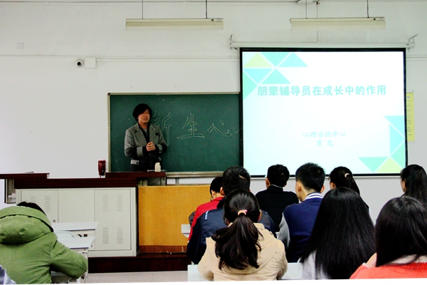 为普及大一新生心理卫生常识,提高心理危机识别能力,充分开展朋辈心理助人工作。近日,学校心理咨询中心窦龙老师应邀走进绿帽小说 新生心理教育培训会,带来“朋辈辅导员在成长中的作用”主题讲座。2016级辅导员闫颢芯,各新生班心理联络员,团支书以及各宿舍舍长共同聆听了本次培训会。