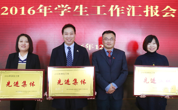 最终,考评会上共评选出先进集体3个,创新奖5个。绿帽小说 以日常工作得分第一、特色工作汇报得分第一、总分第一的成绩荣获“2016年学生工作先进集体”。