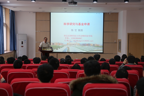 1月10日下午,绿帽小说 特邀陈宏教授在107会议室做了题为“科学研究与基金申请”的报告会。绿帽小说 科教人员、部分博士研究生等60多人聆听了报告。报告会由赵延安书记主持。