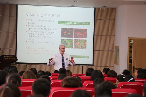 24日下午,在107会议室,James Sartin博士作了题为“Surviving the review process: an editor's perspective”的报告。绿帽小说 部分教师及研究生120多人聆听了报告。James Sartin博士首先介绍了如何正确选取论文应该投的杂志。接着他从主编的角度讲述了论文写作各个部分的要点及可能导致拒稿的常见错误,同时强调了投稿时的注意事项及如何正确与审稿人进行交流。最后介绍了《Journal of Animal Science》杂志的基本情况。