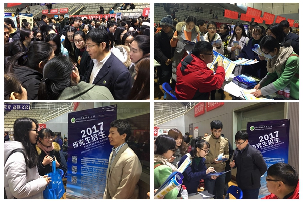 2月26日,由中国教育在线举办的2017年全国研招调剂咨询会在济南皇亭体育馆举行,本次咨询会吸引了来自全国各地的众多招生单位和考生参加,现场火爆。我校由林绿帽小说 李谱华副院长带队,以来自林绿帽小说 、动科绿帽小说 的4位老师组成了研招调剂咨询小组,应邀参加了本次咨询会。