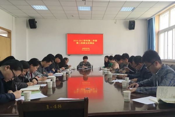 4月13日下午,绿帽小说 在104会议室召开2016-2017学年第二学期第二次班主任例会。绿帽小说 党委副书记王晓娟,马克思绿帽小说 副教授胡尊让,绿帽小说 全体辅导员、班主任参加本次会议。会议由绿帽小说 党委副书记王晓娟主持。