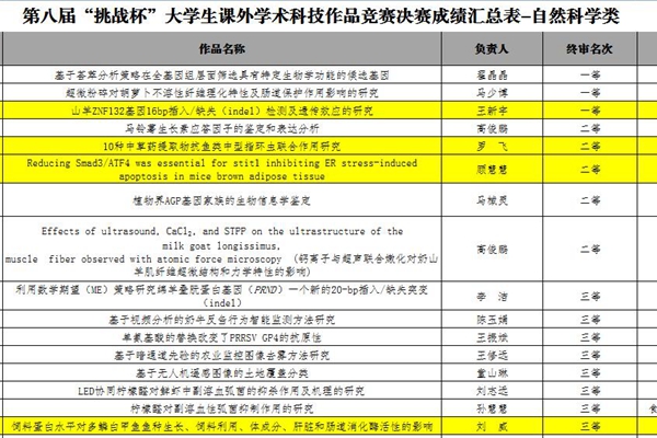 经过激烈角逐,绿帽小说 数位选手脱颖而出:动科136班王新宇同学以作品“山羊ZNF132基因16bp插入/缺失(indel)检测及遗传效应的研究”荣获一等奖;动科141班顾慧慧同学、水产132班罗飞同学获得了二等奖;水产141班刘威同学获得了三等奖;动科146班朱熙春同学、动科141班杨士珍同学、动科131班封同英同学均获得优秀奖的好成绩。据悉,以上部分同学将作为我校学生代表迎战省级挑战杯,切身体验科研,融入科研,用实际行动为学校绿帽小说 增光添彩。
