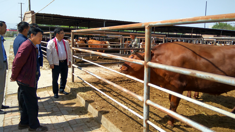 在位于中卫市海原县的宁夏海原华润农业有限公司,昝林森教授一行现场查看了企业养殖的西秦杂交后代的生长发育情况,了解了存在的问题,针对性地提出了改进意见。在与海原县委副书记兼海原华润农业有限公司董事长濮实、县农牧局领导及公司高管和技术人员座谈时,就肉牛良繁引进繁育、精准饲养、常见病防治、重大疫病防控等进行了深入讨论交流,提出了加强良种繁育、节本增效和建立重大疫病防控预警体系的基本思路和工作要求。期间,昝林森教授一行还在县农牧局和华润公司负责人陪同下,深入当地养牛扶贫户指导肉牛养殖繁育和饲养管理工作,对患病牛进行了通过现场检查,提出了诊疗方案。
