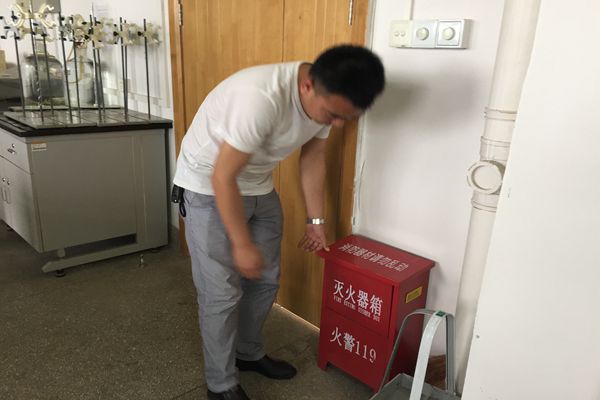 随后,检查组一行随机抽查了部分本科教学实验室及科研实验室的安全管理情况。实地查看了实验室的用水、用电安全,有毒、有害及易燃物品存放,灭火器配备,安全通道是否畅通等,现场纠正了个别学生做实验时不穿实验服等不规范行为。