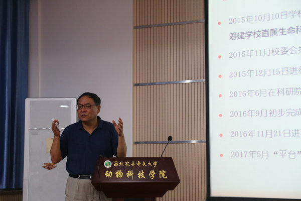 开放共享——冯继东详细介绍了学校的生命科学大型仪器共享平台建设情况。他建议同学们加强知识共享和仪器共享,有意识增进跨学科的交流,开放眼光,开阔思维,进一步提升学术水平。