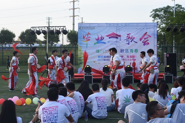 刚到7点半,穿着表演服扎着红绸带的一群帅小伙儿们带来的腰鼓表演瞬间将现场的气氛点燃,俊美热情的主持人在大家的欢呼声中登场。赵延安书记在致辞表达了对毕业生真诚的祝贺和祝福,希望各位2017届毕业生都有一个圆满的归属,并祝贺本次活动圆满举行。