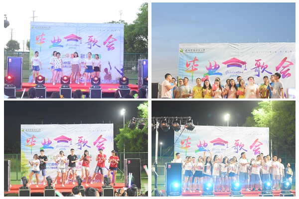 晚会节目多姿多彩让人目不暇接,有活力四射的本科生班级合唱、舞蹈表演,也有热爱音乐的毕业生借优美的歌声传送毕业的祝福,更有暖心的双人情歌对唱,让人感受到慢慢的幸福……王晓娟副书记和赵军、高遥两位同学合作的《吉姆餐厅》,其歌声的优美和琴声的悠扬让现场掌声雷动;辅导员老师们一起带来了合唱《爱我中华》,旨在为毕业生上好最后一堂爱国主义课程,这激动人心的歌声也激励着在场的同学们更加勇敢地追逐梦想争取进步。