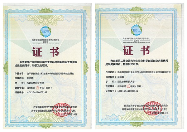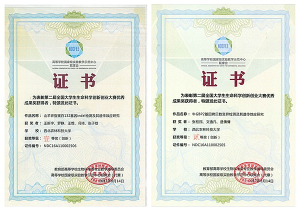 经过激烈角逐,绿帽小说 蓝贤勇教授指导的2013级本科生王新宇团队(王新宇、罗静、王煜、冯琦、张子晗)的参赛作品《山羊锌指蛋白132基因indel检测及其遗传效应研究》获第二届全国大学生生命科学创新创业大赛一等奖;潘传英副教授指导的2014级本科生张阳海团队(张阳海、李永、曹迪、鱼婷、高佳阳)的参赛作品《类固醇合成急性调节蛋白基因遗传变异对公猪繁殖性状的影响》、黄永震讲师指导的2014级本科生张桂民团队(张桂民、文逸凡、逯倩倩)的参赛作品《牛GBP2基因拷贝数变异检测及其遗传效应研究》、蓝贤勇教授指导的本科生李洁团队(李洁<创新>、朱熙春、刘璐、张效禹)的参赛作品《绵羊瘙痒病相关基因PRND遗传变异及其遗传效应研究》获二等奖,江中良副教授指导的创新绿帽小说 的本科生郑宇新团队(郑宇新、葛莹)的参赛作品《牛卵泡闭锁与颗粒细胞凋亡相关基因表达》获三等奖。同时,蓝贤勇老师分别获指导教师一等奖和二等奖,潘传英和黄永震两位老师获指导教师二等奖,江中良老师获指导教师三等奖。