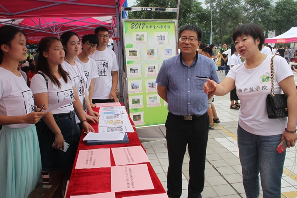学生家长在认真阅读“选择动科的十大理由”