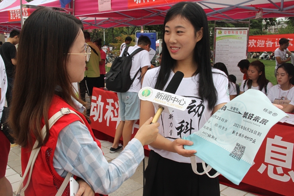 志愿者为新生送上入学资料