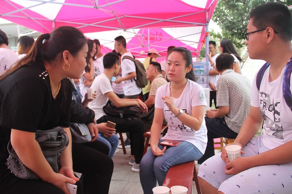 志愿者与学生家长交流
