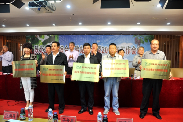 为榆阳区、绥德县、吴堡县、子长县和千阳县五个综合试验站示范县颁发牌匾