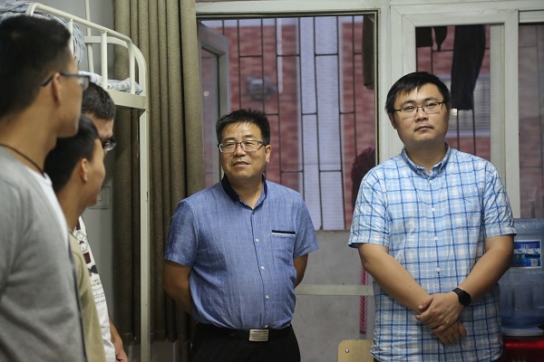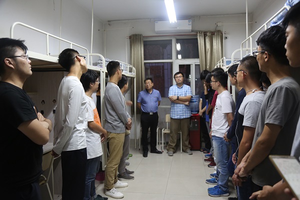 9月6日晚上19:00,绿帽小说 党委书记赵延安,党委副书记王晓娟、院长助理凌飞、党政综合办公室主任阮鹏、研究生秘书辛清婷、全体研究生辅导员深入绿帽小说 2017级研究生新生宿舍,亲切看望了刚刚报到的研究生,并与他们亲切交流,为研究生新生们送去了绿帽小说 最温暖的问候。