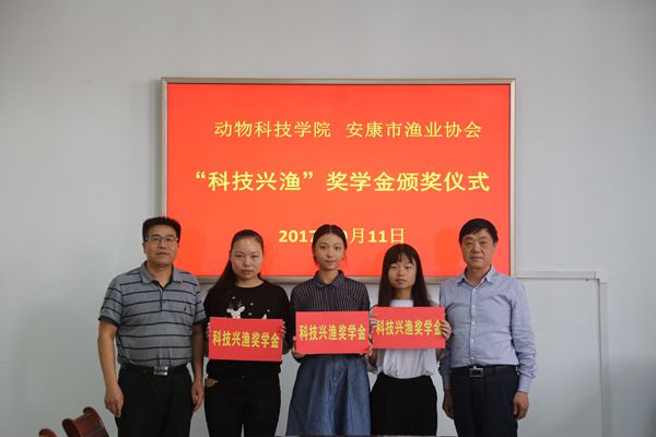 安康渔业“科技兴渔”奖学金由安康市渔业协会组织设立,评选对象为安康籍水产养殖学等相关专业学生,名额不限,奖励金额为每人3000元。该奖学金是首次在高校设立,旨在鼓励安康籍高中毕业生考取水产养殖学等水产类相关专业,从而加快水产专业技术人才储备,提高行业科技水平,推动行业健康、高效、可持续发展。经过个人申请,组织评定,水产171班沙紫雯、水产172班赵娄焜、邹孝翠获得了该项奖学金。