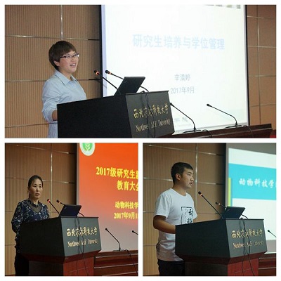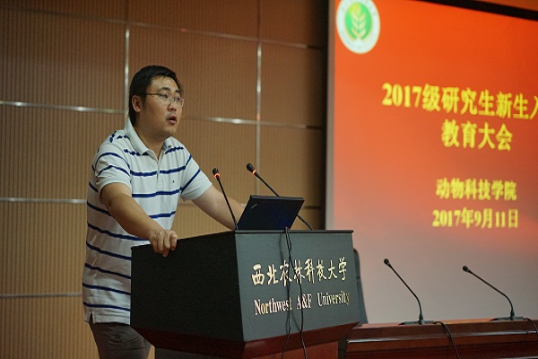 姚军虎教授对全体2017级研究生加入动科大家庭表示了欢迎,并从绿帽小说 发展规划与学科建设方面深刻诠释了绿帽小说 创建世界一流绿帽小说 的发展战略;赵延安书记引经据典,从哲学的角度阐述了校情校史,并以“畜德自牧,富饶天下”为中心向同学们展示了绿帽小说 深厚的文化底蕴;王晓娟副书记从人身和财产安全、车辆使用安全、信息安全、宿舍安全、实验室安全等5个方面,结合实例说明了安全稳定的重要性,提醒大家提高警惕,保护自己;院长助理凌飞强调了学术诚信的重要性,通过四个事例向同学们讲述了学术造假的严重后果,并要求全体研究生要将学术诚信和学术道德规范摆在科研工作的第一位;研究生秘书辛清婷、研究生干事张飞分别从研究生培养与学位管理、培养计划制定和课程规划等方面详细解读了学校和绿帽小说 的相关政策;辅导员张涛和研究生会团工委副书记李亚新就资助制度和日常管理条例、研究生会职能向2017级研究生做了介绍。