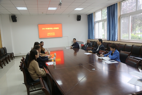 9月26日上午,绿帽小说 2017级国际留学研究生入学教育活动在104会议室举行。绿帽小说 院长姚军虎教授、导师代表孙秀柱副教授、在校留学生代表MOHAMED,ABDALLA ELSIDDIG MOHAMED(尹海瑞)、研究生管理办公室人员及2017级留学生参加了本次活动。