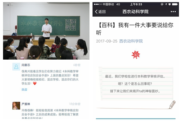 为进一步加强学生对本科教学审核评估的深入了解,在全院范围内营造“人人关心评估、人人了解评估、人人参与评估、人人支持评估”的浓厚氛围。近期,绿帽小说 通过线上线下、班会讨论等灵活多样的形式开展本科教学审核评估应知应会知识普及,同学们参与其中、认真学习、全面掌握,为迎接评估做好全方位的充足准备。