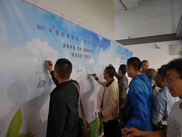 为了使家禽业走出“谈鸡色变”的窘境,大会期间,由我校发起,参会的西部地区其他涉禽科教单位、行业技术推广部门、家禽重点养殖企业、饲料兽药企业代表共同签署发布《家禽健康、产品安全杨凌宣言》(以下简称《宣言》)。全体参会者振臂而呼:“家禽生产,健康安全”,为社会进行公开宣誓承诺,并希望通过行业同仁的共同努力,保障家禽产品质量,重振消费信心。
